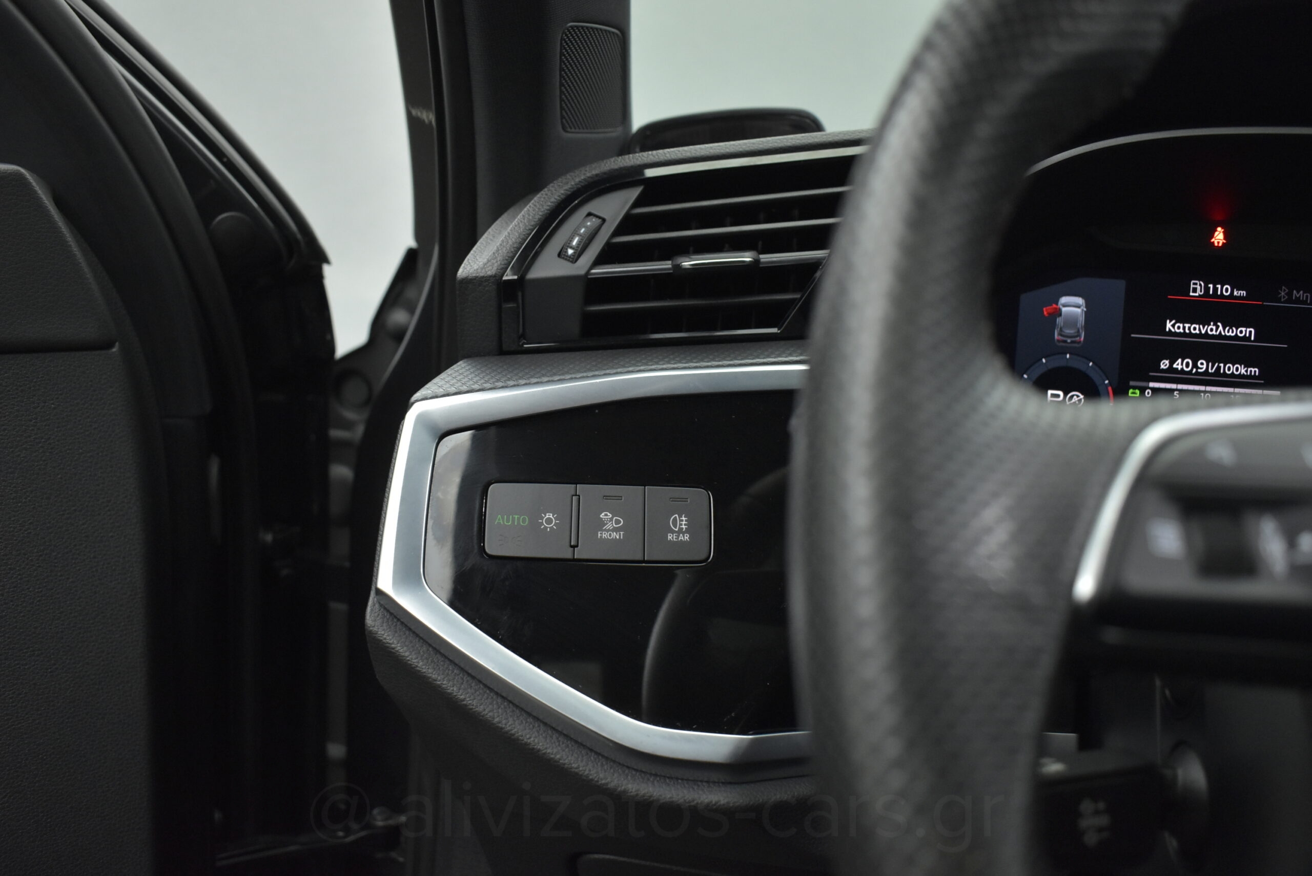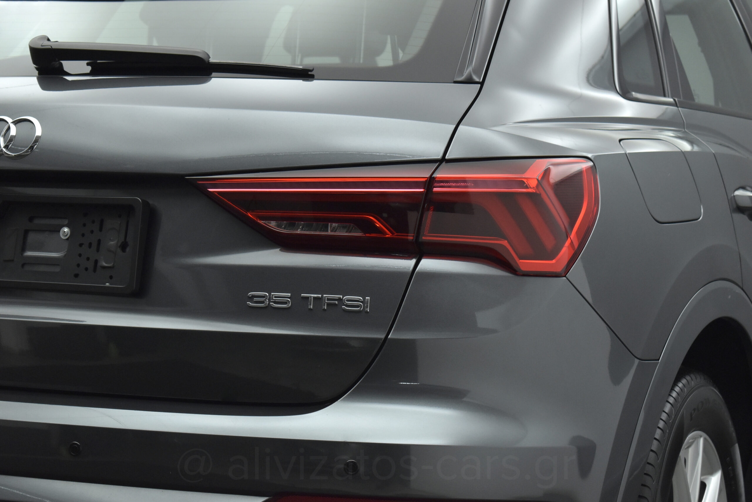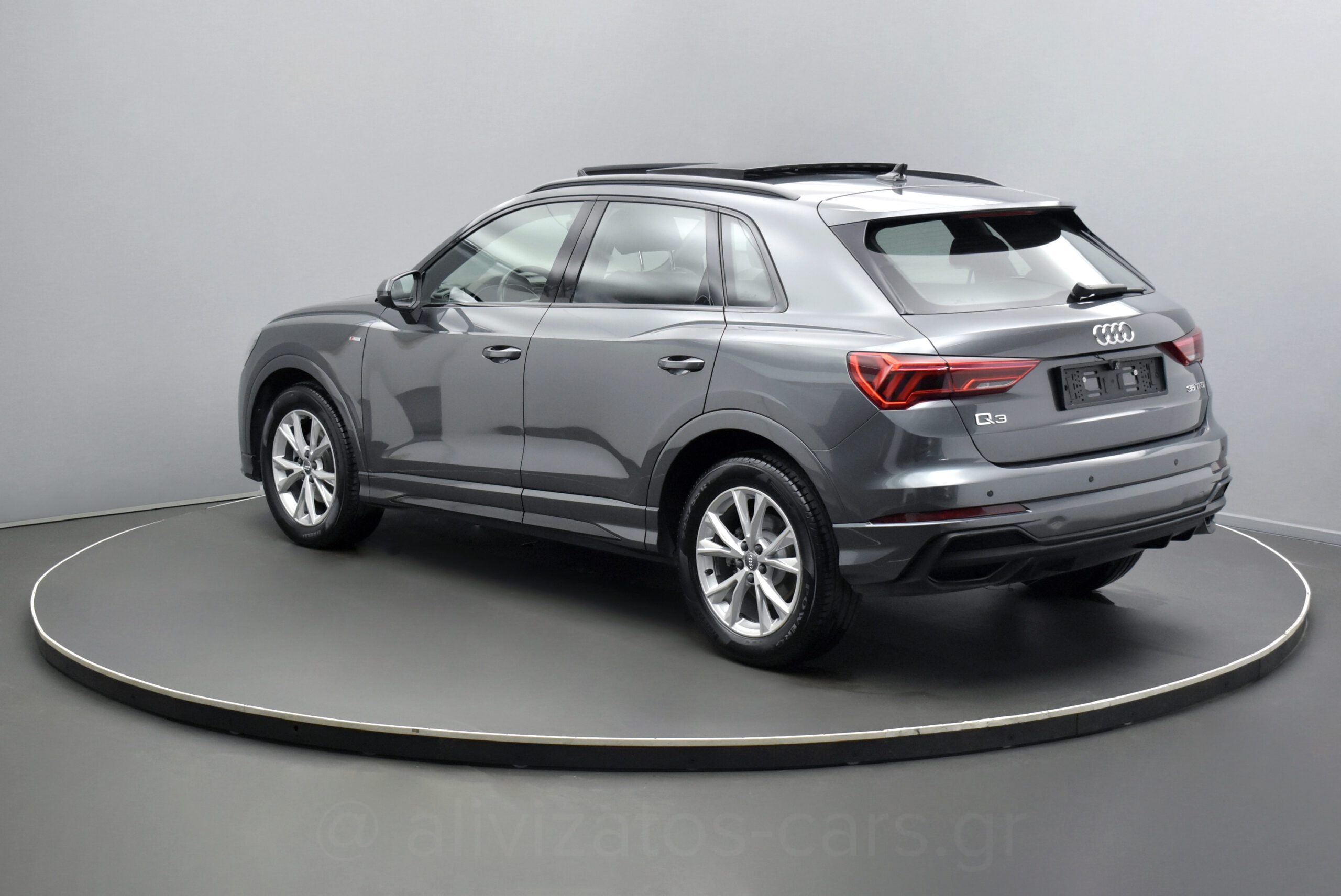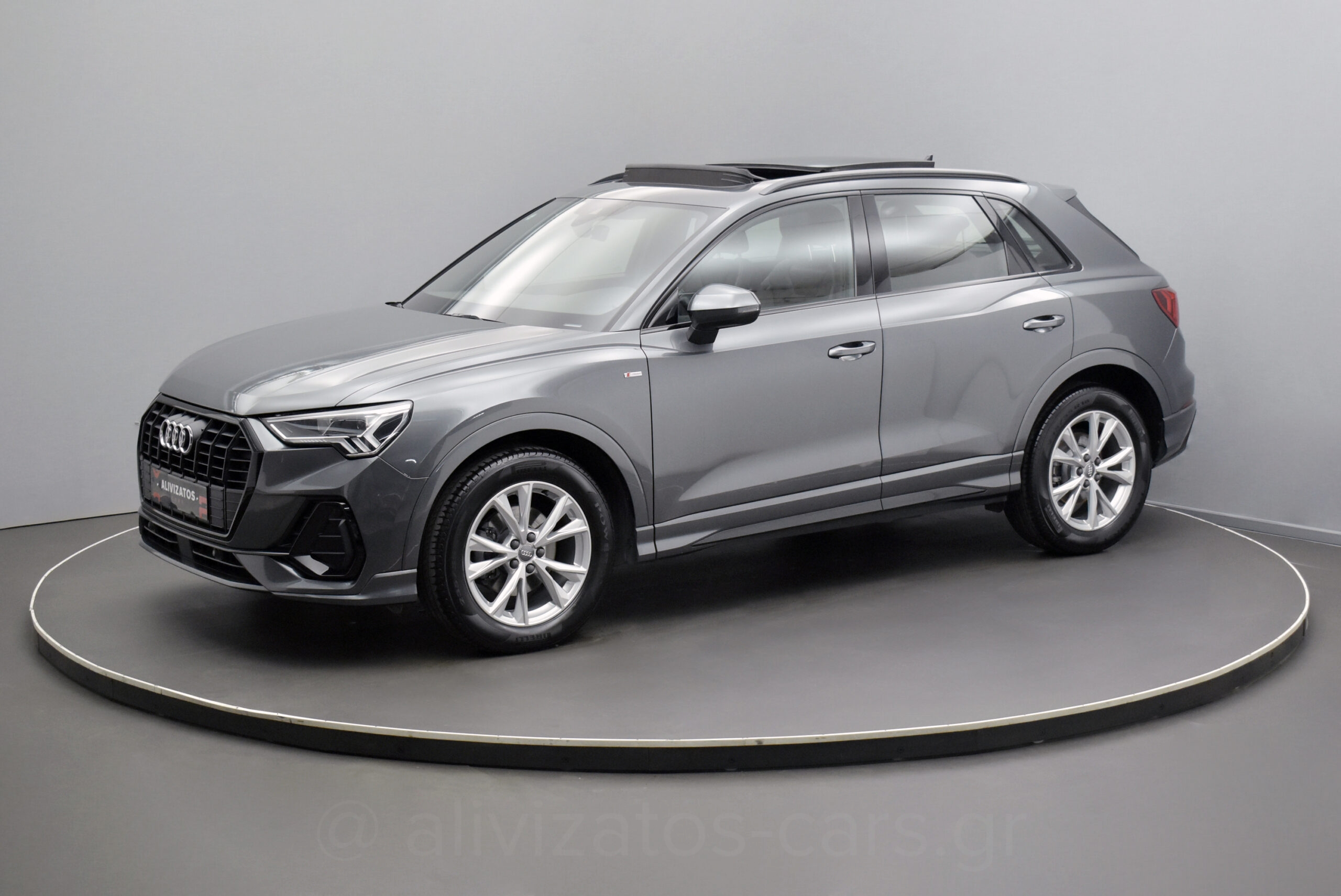 Audi Q3 35 TFSI S tronic 150hp, έκδοση S Line με πανοραμική οροφή, premium εμφάνιση και δυναμικές επιδόσεις.